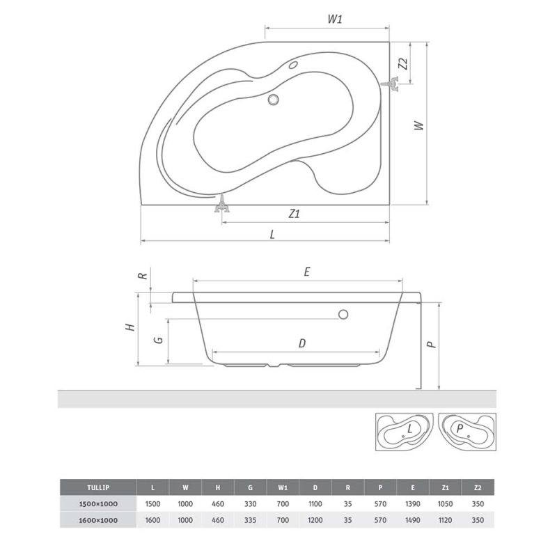A Tullip kád aszimmetrikus formája ideális kisebb vagy egyedi kialakítású fürdőszobákba. A tágasabb belső rész kényelmes fürdőzést biztosít, míg a keskenyebb oldal helyet spórol. A csomag tartalmazza az előlapot, így a kád esztétikusan és takartan építhető be.