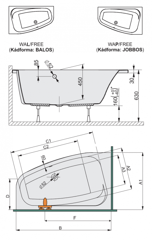 Az aszimmetrikus sarokkialakításnak köszönhetően a Sanplast WA/FREE kád egyik oldala tágasabb fürdőteret kínál, míg a másik oldal a helytakarékosságot szolgálja. Ideális választás olyan fürdőszobákba, ahol fontos a praktikus térszervezés, de a kényelemről sem szeretnél lemondani. A szintezhető alátámasztó lábszerkezet megkönnyíti a beállítást és a beépítést.