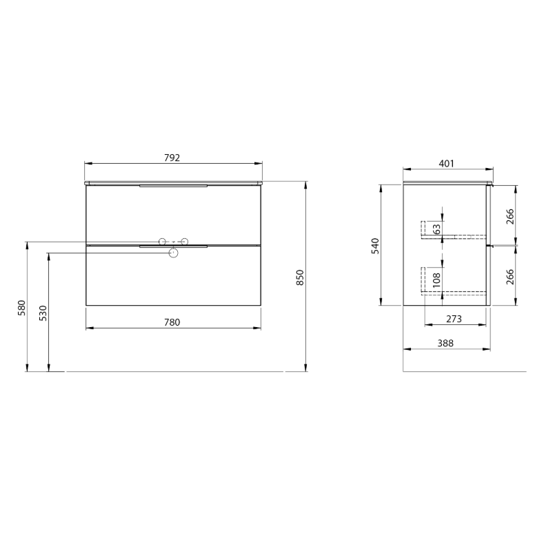 A Sapho CIRASA szekrény elegáns és praktikus választás fürdőszobába, falra szerelhető kivitelben. Két fiókja halk, lágy záródással működik, így nemcsak esztétikus, de kényelmes és tartós is. MDF/laminált anyagból készül, többféle színben és méretben elérhető, így könnyedén illeszthető bármilyen enteriőrbe.