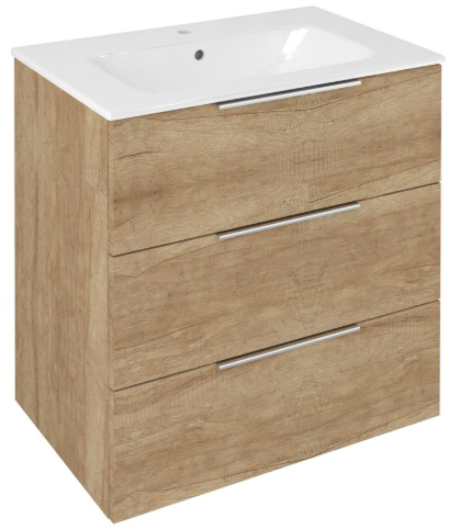 Sapho Cirasa Mosdótartó szekrény, 3 fiókkal, 69,8 x 75 x 46 cm, Alabama tölgy
