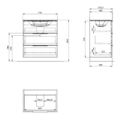 59,2×75×46 cm, 69,8×75×46 cm, 79,8×75×46 cm
