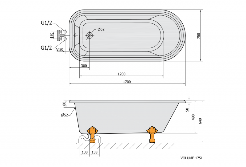 | 170x75 cm | 175 l |