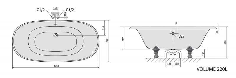 Ez a típusú fürdőkád nem a falhoz, hanem szabadon, akár a szoba közepén is elhelyezhető, így különleges térélményt nyújt.