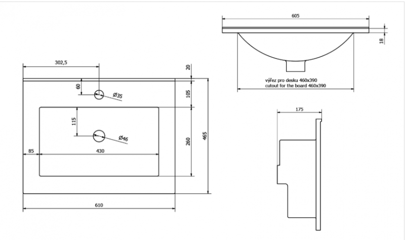 Sapho Slim kerámiamosdó, 61 x 46,5 cm
