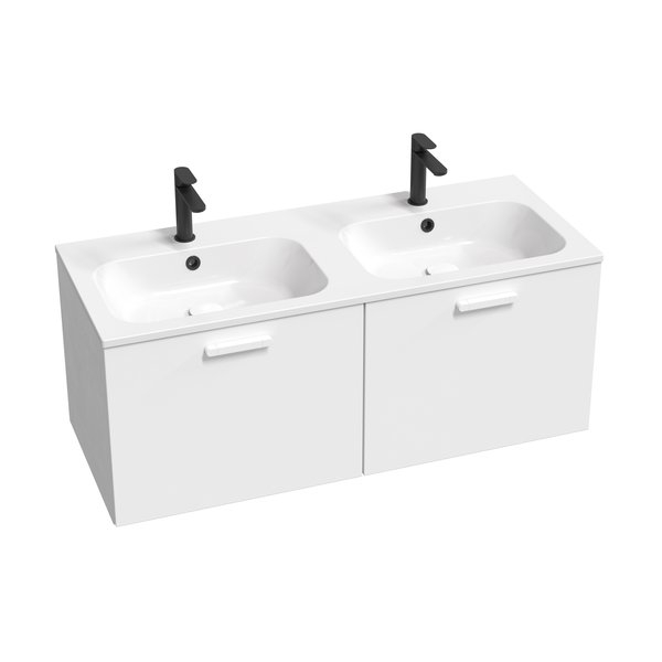 D Chrome II 120 két fiókos mosdó alatti szekrény (belső magassága 40 cm). A szekrény jobb oldali részében egy integrált, alacsony fiók található. A bal oldali részében pedig a 40 cm magasságú fiók található. A szekrény bal oldali részében nyílások találhatók az alacsony fiók későbbi beszereléséhez, amelyet utólag is megvásárolhatunk vagy áthelyezhetünk a jobb oldali részből. Az ajtókat fényes fehér színben, a fogantyúval a választott színárnyalatban, már összeszerelt állapotban szállítjuk, beleértve a szerelőkészletet (csavarok, zsanérok) és a fogantyút.