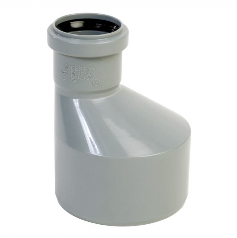A HTR 110-50 PP szükitő polipropilén (PP) anyagból készült, és ideális megoldás benti és utcai szennyvíz elvezető rendszerekhez. Ez az idom lehetővé teszi két különböző átmérőjű cső (110 mm és 50 mm) összekapcsolását, miközben szivárgásmentes csatlakozást biztosít gumigyűrűs tömítésekkel.