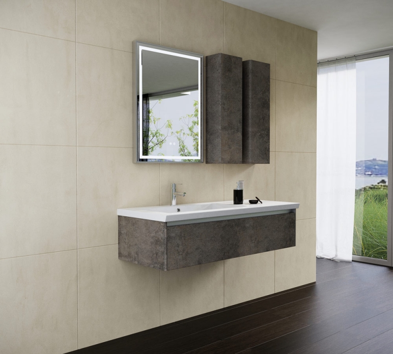 Opcionálisan rendelhető AURA tüköt: Körben integrált világítással, páramentesítővel, érintőgombos vezérléssel, fém keretbe épített tükör (Fényáram: 550-570 lm/m, Teljesítmény: 7,2 W/m, Páramentesítő kapacitása: 15-60 W)