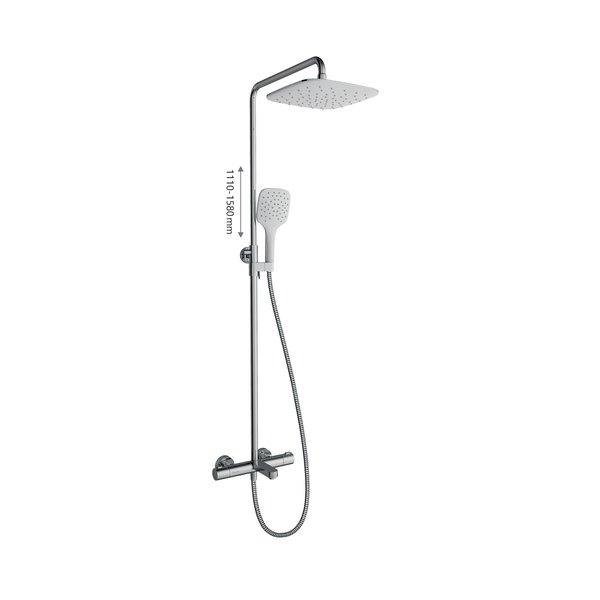 Termo zuhanyoszlop zuhanykészlettel. Fényes króm kivitelben, fehér fejzuhannyal. Állandó vízhőmérséklet beállítása.