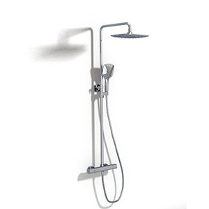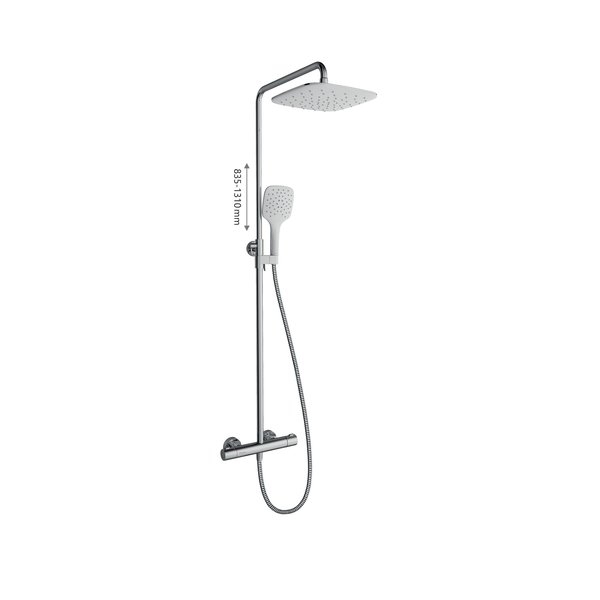 Termo zuhanyoszlop, csúszó zuhanykészlettel. Fényes króm kivitelben fehér fejzuhannyal. Állandó vízhőmérséklet beállítás.