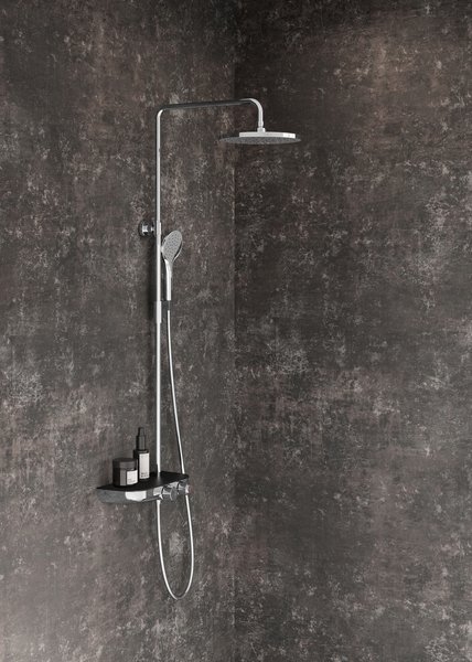 A termosztatikus csappal rendelkező zuhanyoszlop számos innovatív tulajdonsággal és móddal rendelkezik. A termo funkciós forgókapcsolóval beállíthatja a kívánt vízhőmérsékletet. A Stop funkcióval egyszerűen vezérelheti a víz be- és kikapcsolását az azonnali leállításhoz vagy újraindításhoz zuhanyzás közben. A fej- és kézi zuhany közötti váltást a forgókapcsoló teszi lehetővé, a vízáramlás fokozatosan változik, azaz mindkét funkció egyszerre keveredik, amíg el nem éri a végállást.