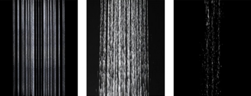 A kézi zuhany három vízsugár-intenzitás funkcióval rendelkezik. A klasszikus Rain mód nyári esőt idéz és nyugtató hatással van a bőrre. A SoftRain funkcióval, amikor levegőt szív be, élvezheti a különösen lágy esőt, amikor minden csepp örömforrás. A Drop funkció beállításakor a víz nagyon finoman folyik, és különösen hasznos lehet szappanozáskor és hajmosáskor.