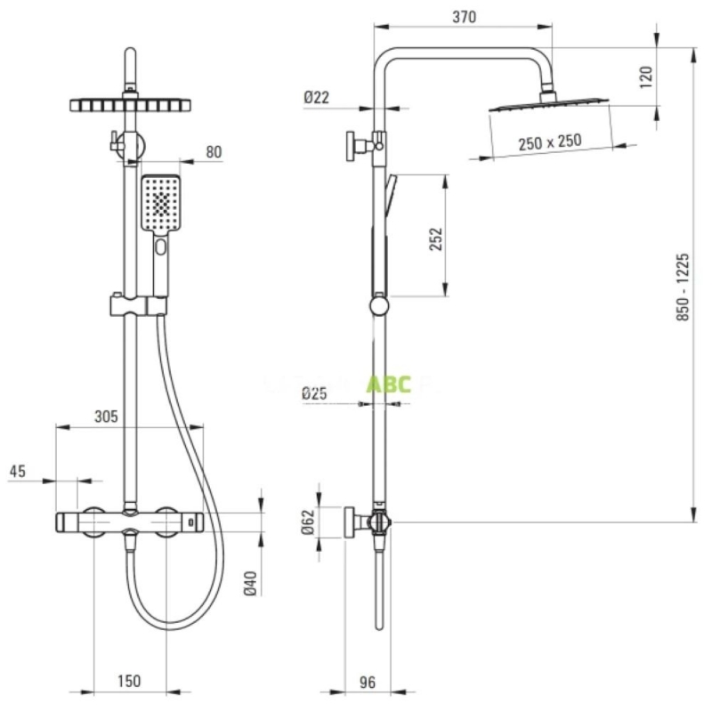 Az esőzuhany a felhasználó magasságának megfelelően állítható magasságú zuhanyfejjel rendelkezik. Ez a tartomány lehetővé teszi az esőzuhany magasságának optimális beállítását a háztartás minden tagja számára.