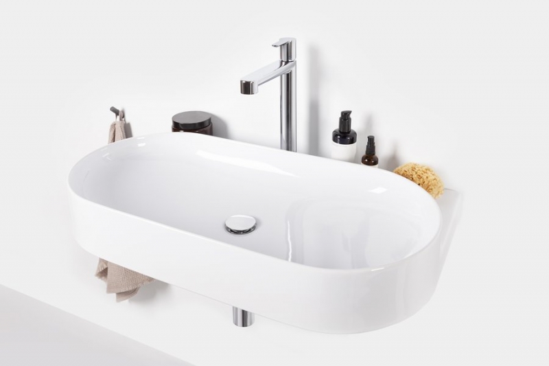 Vékonyfalú kerámia Yard mosdó a Yard konzolhoz vagy a CS Yard 80 mosdó alatti szerkezetre szerelhető, túlfolyó nélkül. Fehér kivitel. Lyukkal álló csaptelephez.