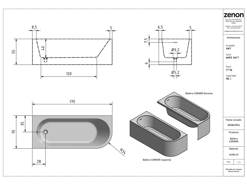 • A Corner az akril anyagú beépíthető kádak iránti elkötelezettségünket tükrözi, és elérhető bal vagy jobb oldali kivitelben is, így még jobban alkalmazkodik a különböző projektek igényeihez.