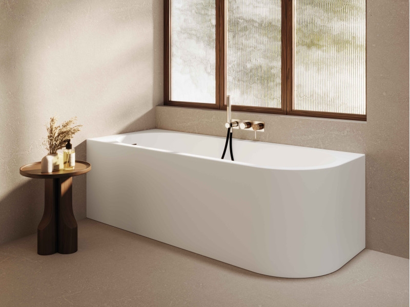• A Corner csatlakozik a fejlett anyagokból készült kádak forradalmához, amelyek különleges fürdőszobák kiemelkedő elemeivé válnak.
