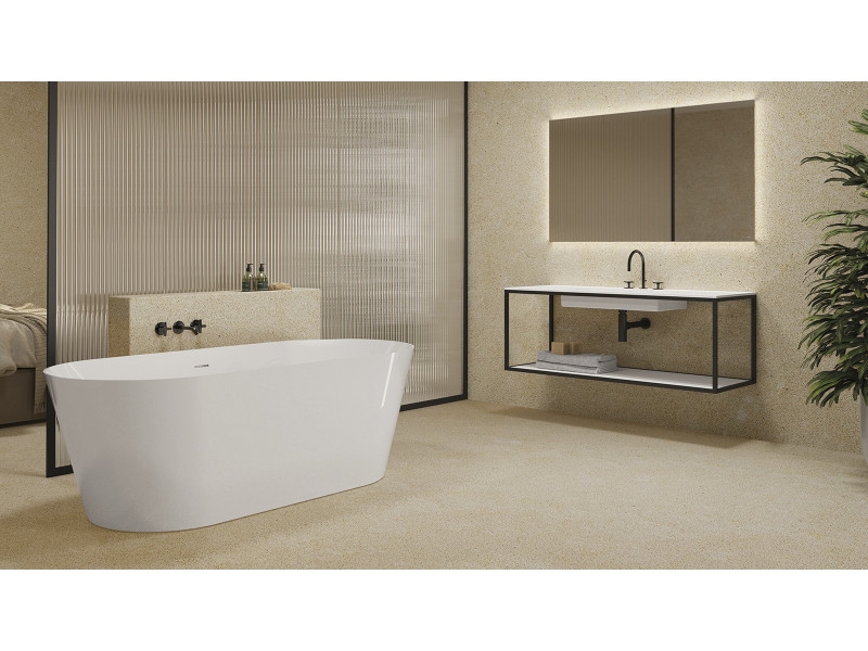 • A kád körül szabadon hagyott tér fokozza a luxus érzetét, miközben megkönnyíti a tisztán tartást is.